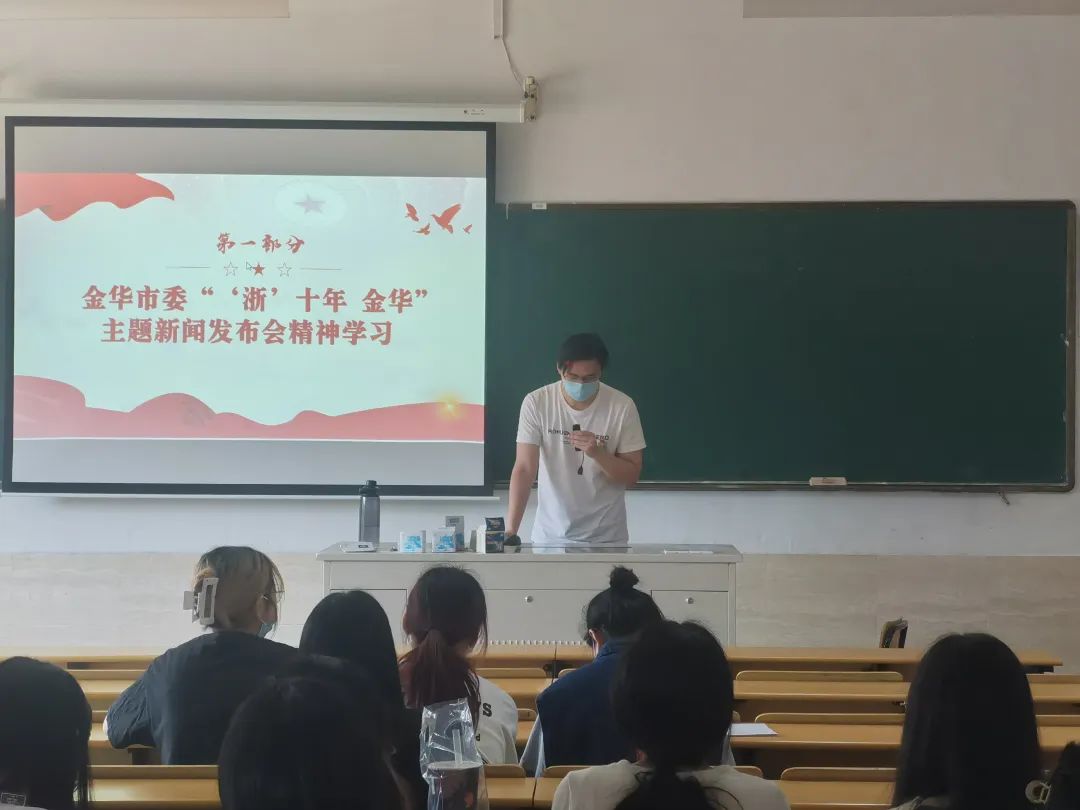 唐浩同志围绕金华市委“‘浙’十年·金华”主题新闻发布会精神学习为主题展开叙述,他指出踏上新的赶考之路,我们将更加紧密地团结在以习近平同志为核心的党中央周围,坚定不移沿着“八八战略”指引的路子走下去,按照省第十五次党代会和市第八次党代会的部署,牢记嘱托、勇担使命、加压奋进,高水平建设内陆开放枢纽中心城市,奋力交出“两个先行”金华高分答卷,以优异成绩迎接党的二十大胜利召开。